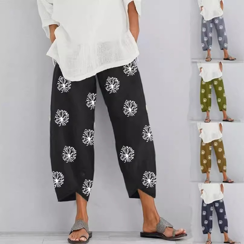 Platform perdagangan luar negeri cross-border pakaian wanita fashion longgar dandelion gunting komuter Dicetak pinggang elastis ukuran besar celana wanita
