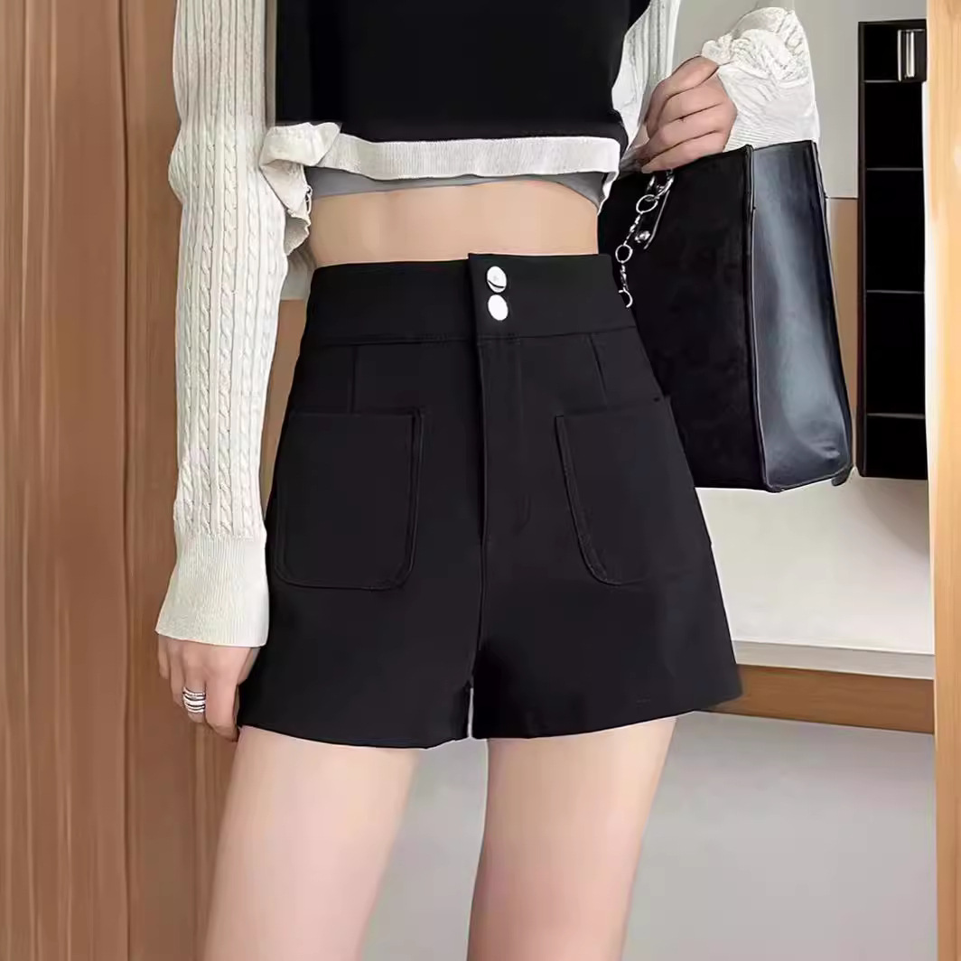 Celana pendek kaki lebar model Korea, celana pendek wanita, celana pelangsing, celana pinggang tinggi, celana pendek kaki lebar, melar, gaya Korea, baru, musim panas, ukuran Plus, 2024