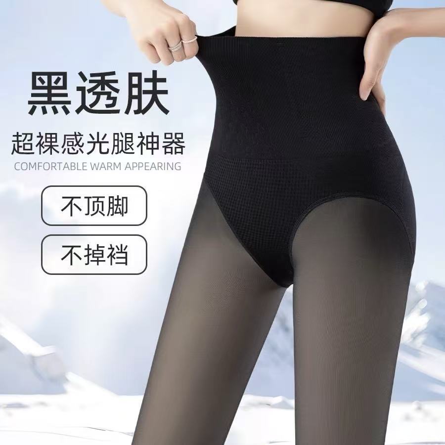Celana Terintegrasi Warna Hitam Kulit Berlapis Beludru Sutra Hitam Pantyhose Dalaman Ukuran Besar Wanita Alat Mengkilap Kaki Tembus Daging Palsu Luar Musim Semi Musim Gugur Musim Dingin