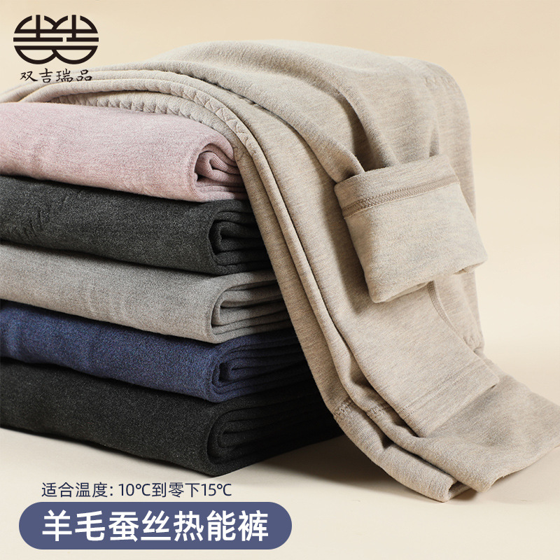 Celana wol Double Gerypi untuk pria, celana termal dengan wol sutra akrilik yang disikat, grosir legging wanita, tahan dingin.