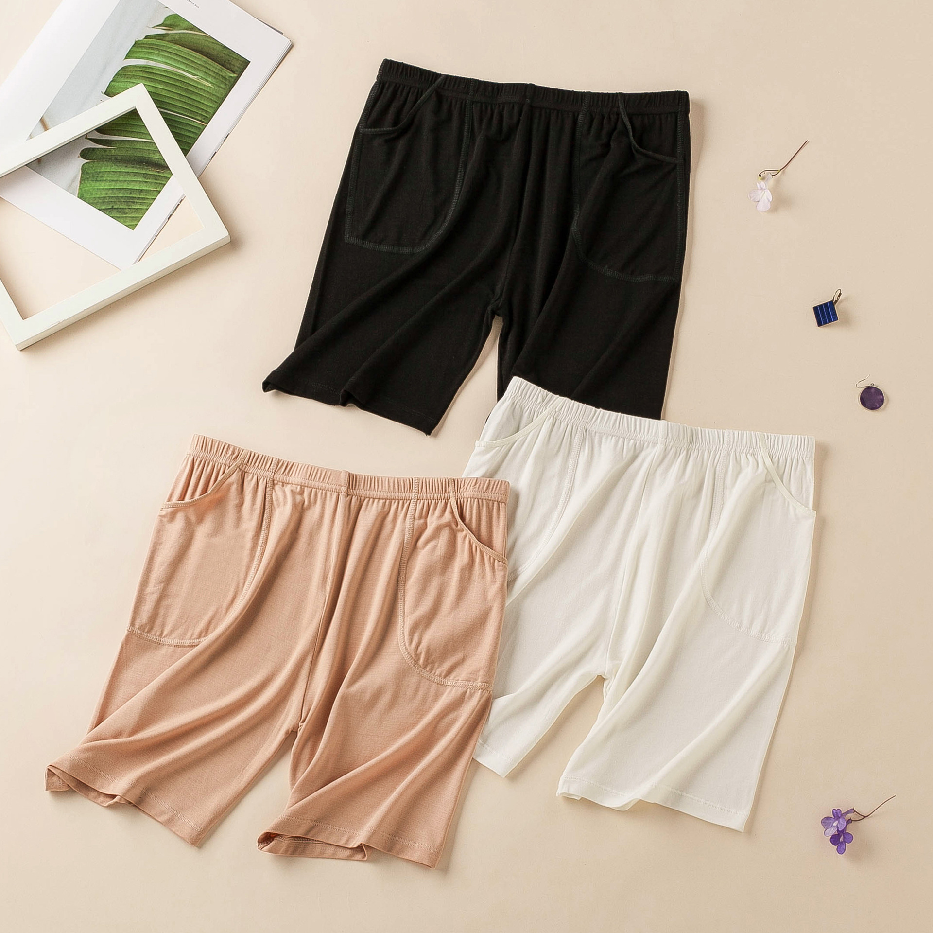 2023 baru musim panas wanita modal lima titik tas ganda celana tipis nyaman bersirkulasi lembut longgar legging