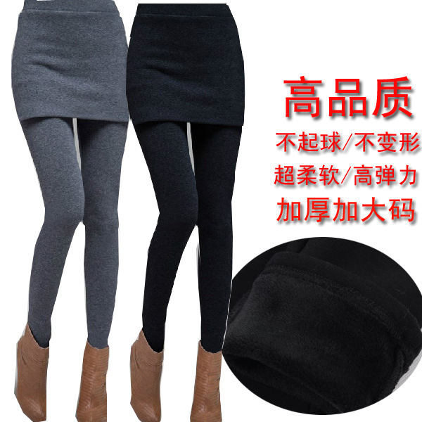 Celana ketat dua potong gaya Korea, celana ketat melar ukuran besar, rok legging wanita dua potong palsu musim gugur/dingin 2020
