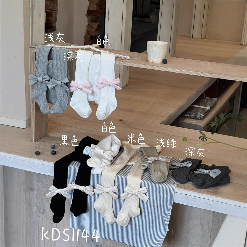 春秋新款侧边蝴蝶结儿童连裤袜女童外穿打底裤三蝴中小童宝宝袜子
