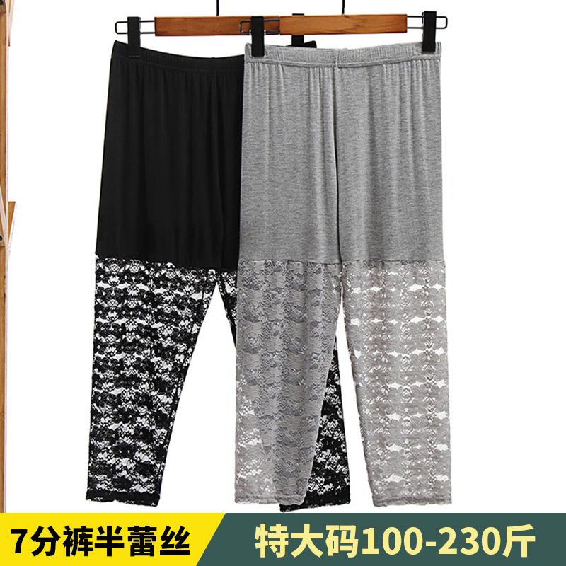 Celana 7 poin ukuran Plus celana pendek ukuran plus modal tipis wanita legging potong ukuran plus celana panjang fat mm230kg renda antieksposur