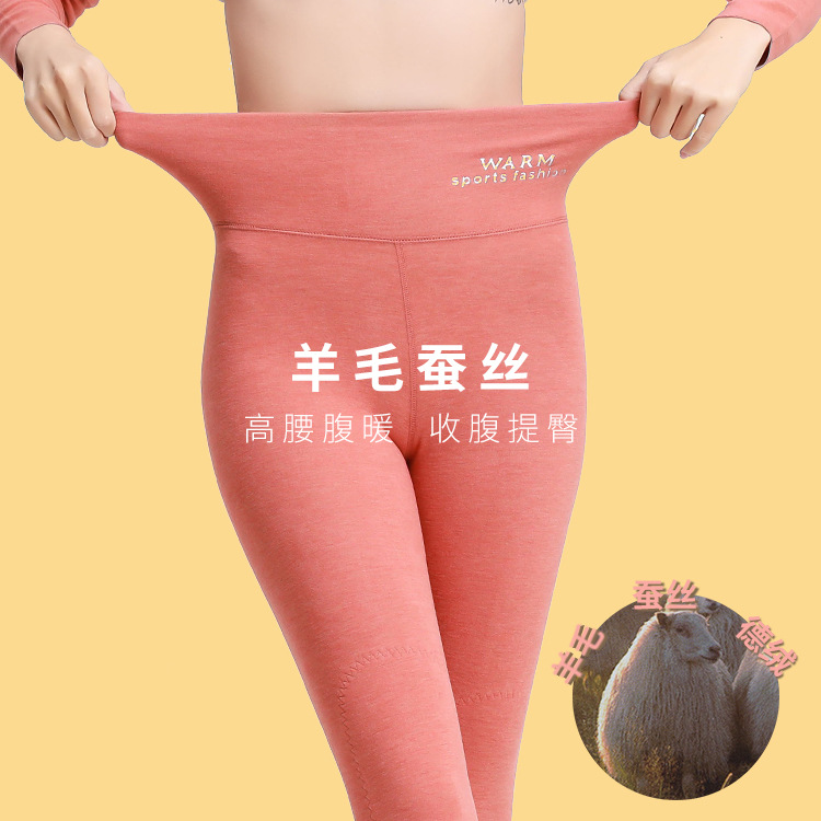 De celana beludru hangat wol sutra wanita, legging ketat pinggang tinggi tebal berlapis bulu domba dengan bantalan lutut tanpa kelim pengiriman satu potong