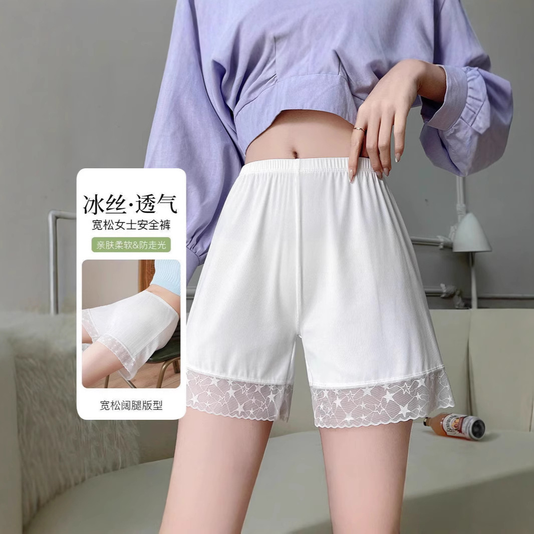 Celana Keselamatan Ukuran Besar Celana Legging Wanita Pinggiran Renda Bernapas Sutra Es Luar Musim Panas