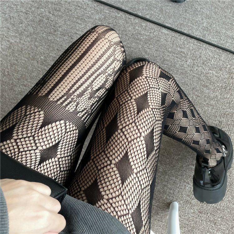 Stoking asimetris kepribadian ukuran besar kaus kaki jaring-jaring desain gelap jacquard pantyhose kaus kaki legging jaring ikan berongga