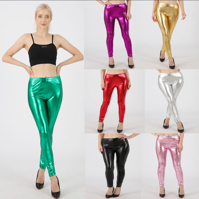 Celana ketat hijau modis gaya Eropa dan Amerika celana crop elastis tinggi ukuran besar pakaian panggung klub malam legging warna solid modis untuk wanita
