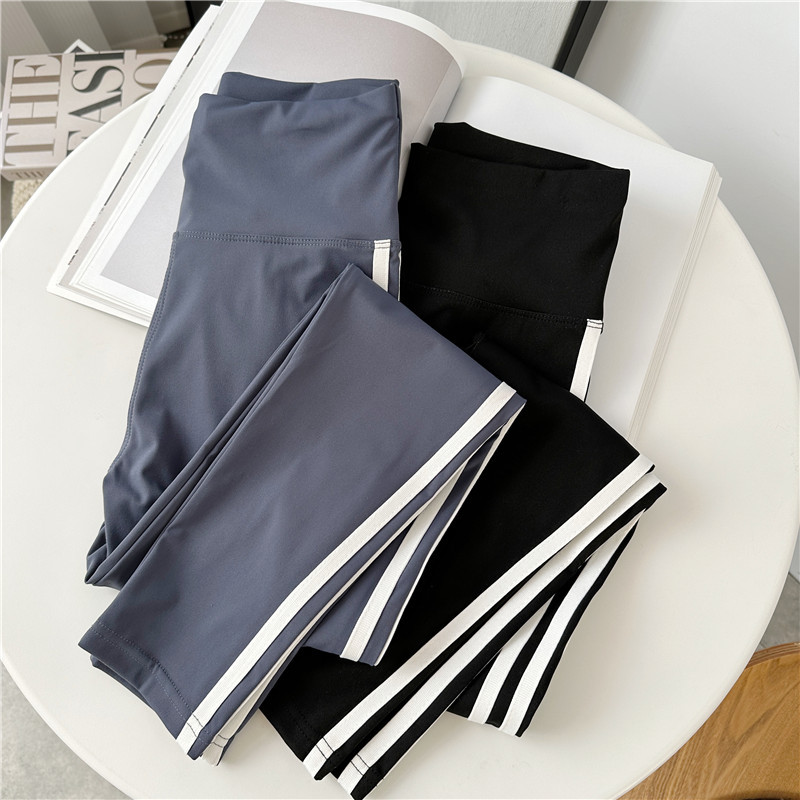 2023 musim semi dan musim panas pakaian luar baru celana crop melar legging ukuran plus longgar Bar tiga garis perut pinggang tinggi
