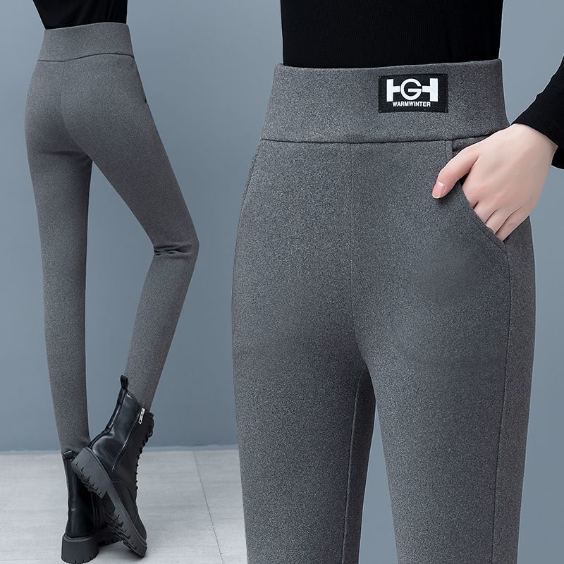 Celana panjang pelangsing wanita, celana luar pinggang tinggi langsing ukuran besar kaki hangat musim gugur dan dingin