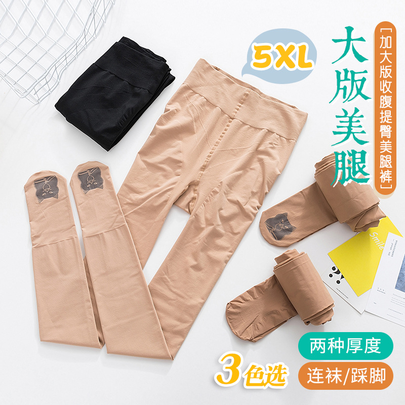 Stoking tipis ukuran Plus celana stoking hitam pelangsing pinggul Apple berwarna daging legging selangkangan tidak licin untuk wanita