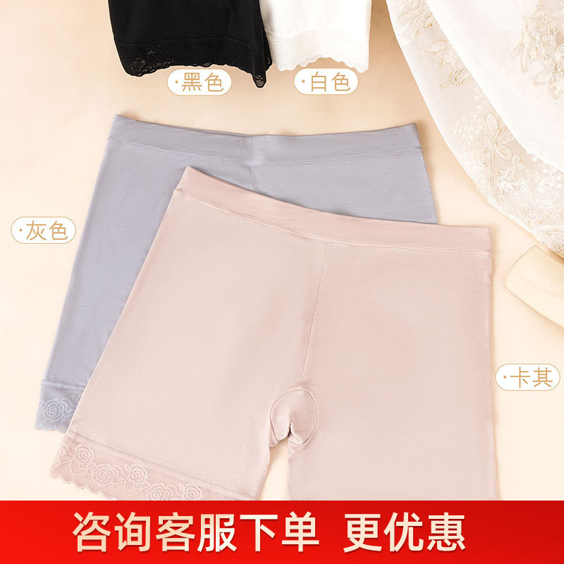 Celana keselamatan ukuran plus modal musim panas khusus celana panjang wanita warna solid antieksposur plus legging ujung renda selangkangan nokalu