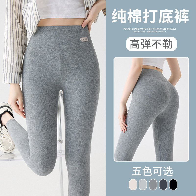 Celana Dalaman Pinggang Tinggi Katun Murni Wanita Pakaian Luar Musim Semi dan Musim Gugur 2025 Model Baru Slim Fit Abu-abu Celana Ketat Satu Potong Rambut Generasi