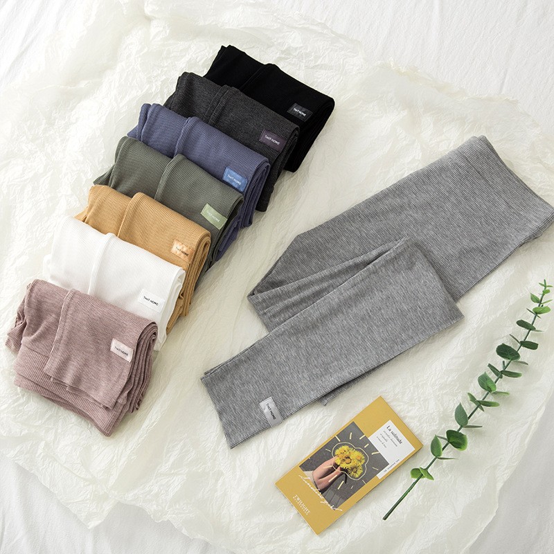 9098 # Celana Bottoming Mudale Model Tipis Pinggang Tinggi Berulir Musim Panas Celana Sembilan Persepuluh Mudah Dipadu Padan Terlihat Kurus Ramping Wanita Ukuran Besar