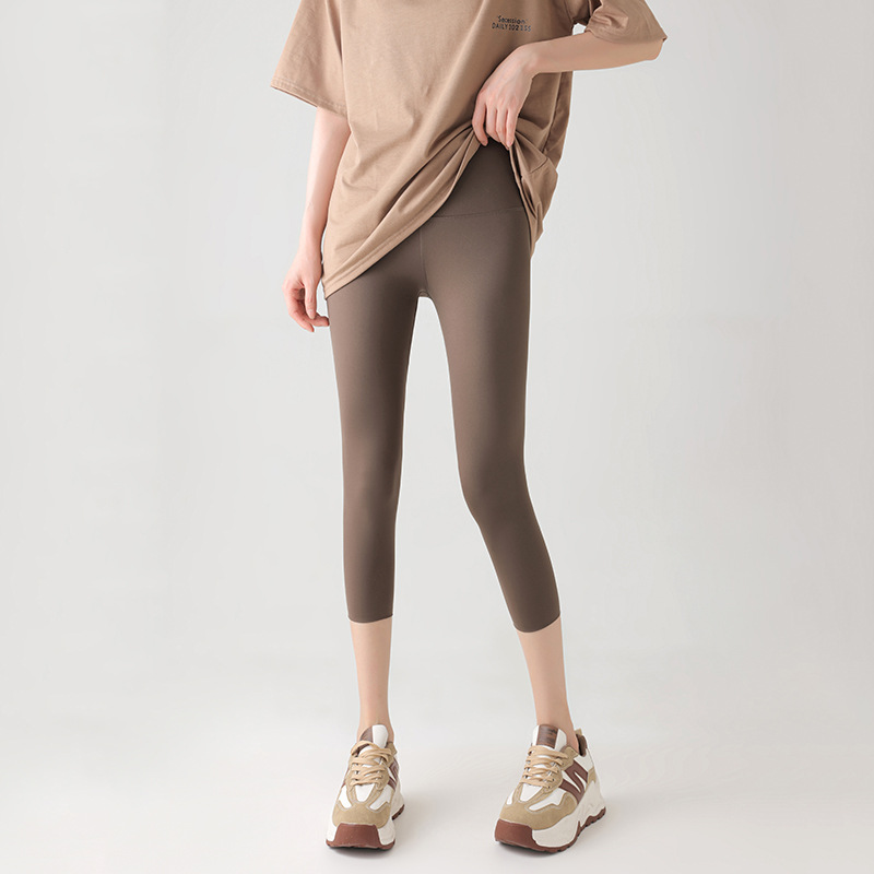 Celana olahraga wanita, celana olahraga crop pinggang tinggi warna polos, celana ketat yoga nyaman