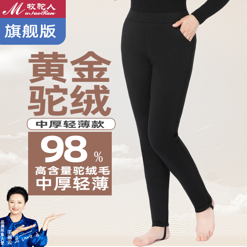 Legging berlapis bulu termal tanpa pengekangan Xishifu untuk wanita, celana terintegrasi yang dipertebal, celana katun berpinggang tinggi, celana luar panjang sembilan per sepuluh.