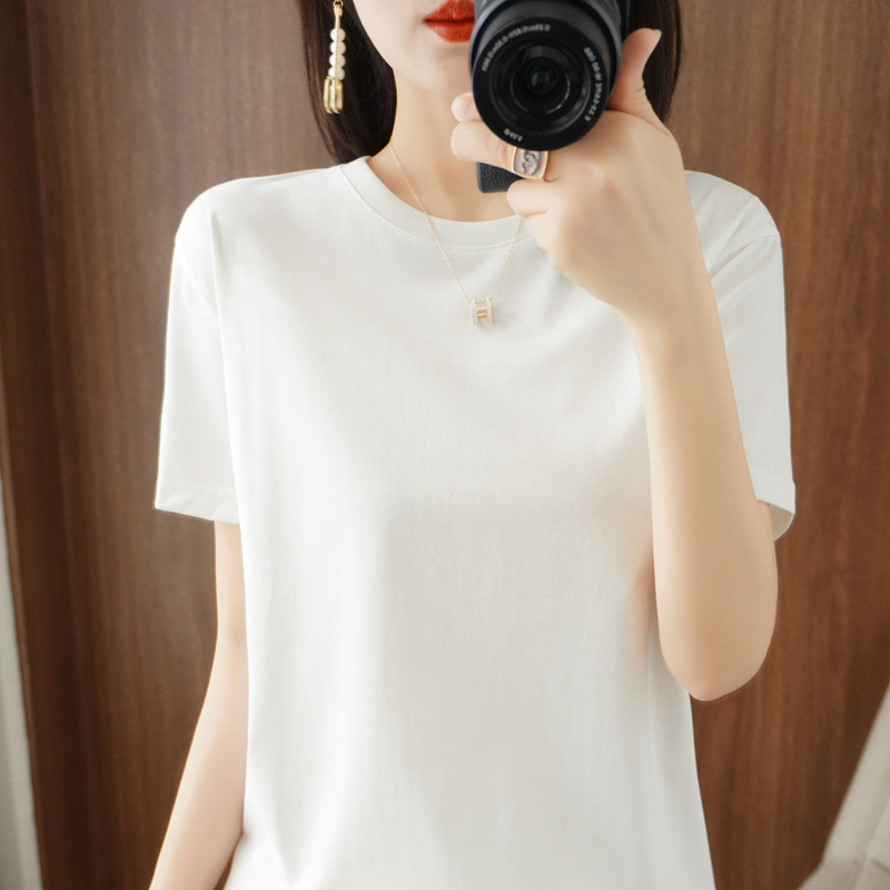 Tiktok kaus leher bulat wanita, Atasan katun pengurang usia, lengan setengah sederhana gaya Korea musim semi baru longgar