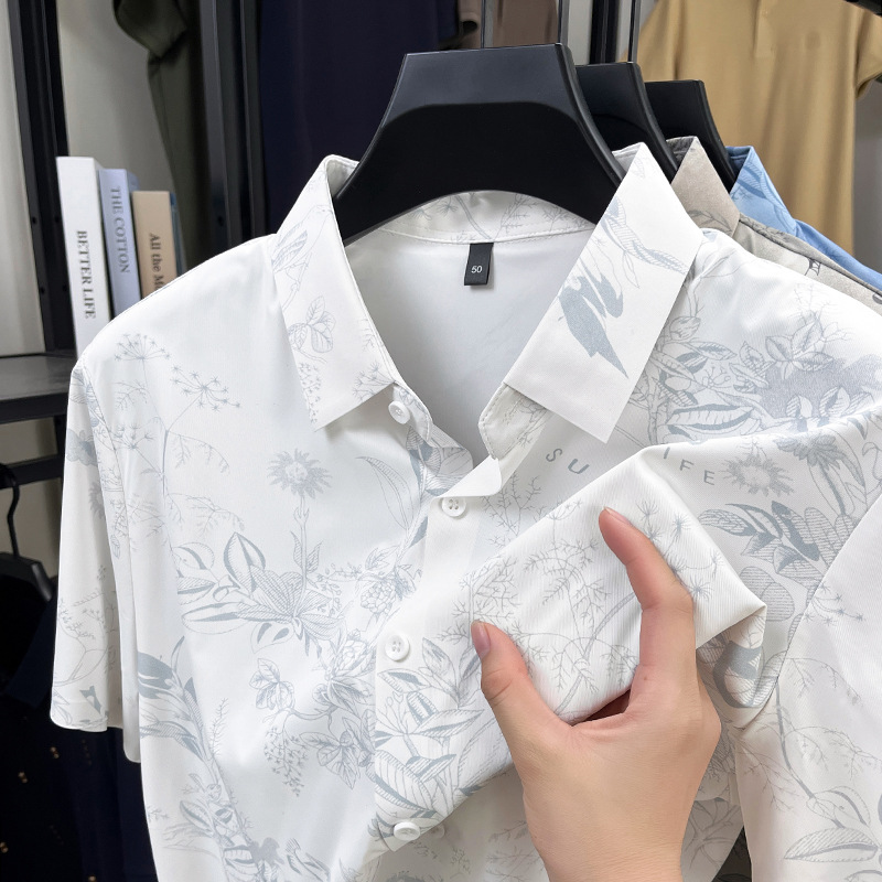 Kaus Trendi Pria Muda dan Setengah Bbaya Model Baru Musim Panas Kaus Kardigan Lengan Pendek Bercorak Kerah Terbalik Kemeja Tanpa Jejak