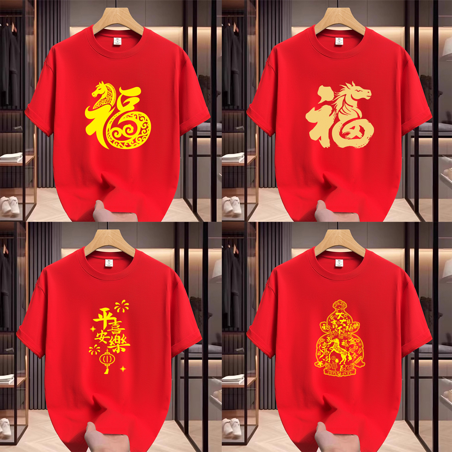 2026福字款红色本命年T恤喜庆马年跨年晚会表演情侣装短袖男衣服