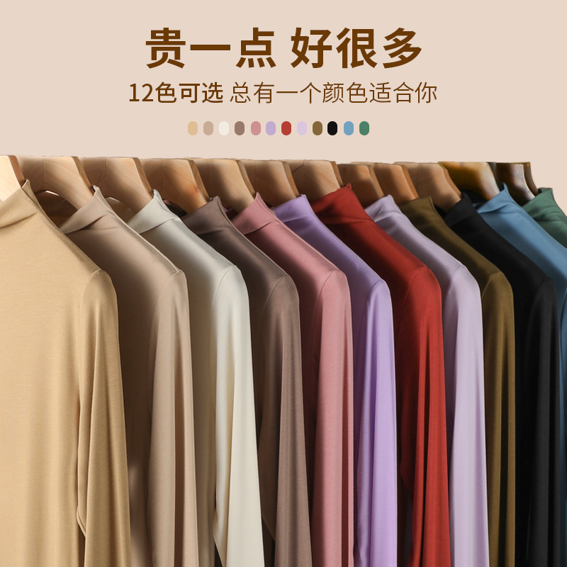 Kaus Dalaman wanita, T-shirt setengah turtleneck Modal Musim Semi dan Musim Gugur Dalaman tipis lengan panjang gaya Barat putih musim gugur dan musim dingin atasan hitam