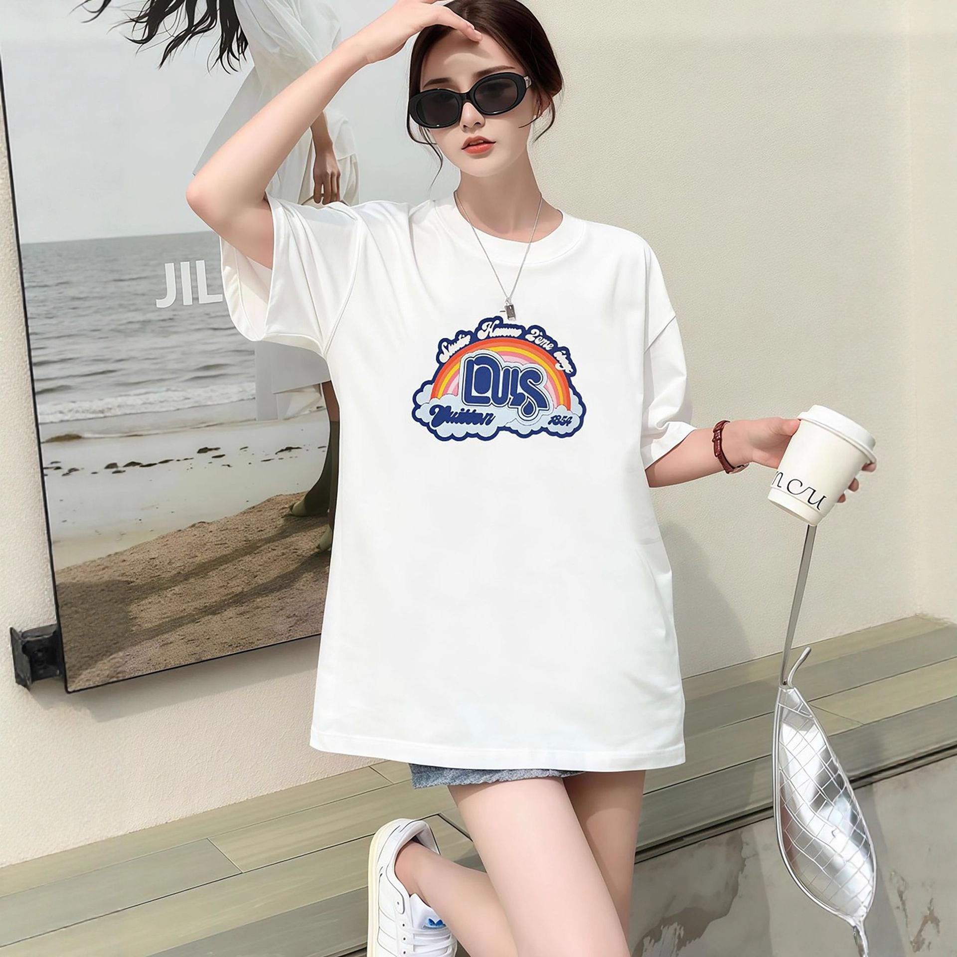 Kaus lengan pendek wanita, baju atasan longgar besar online merah super populer musim panas multi Warna