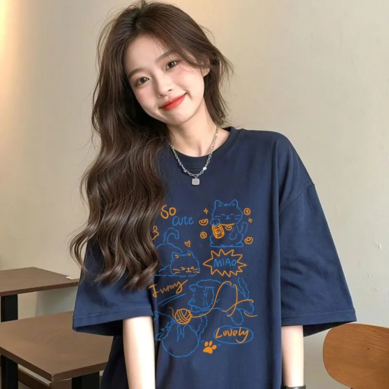 T-shirt Lengan Pendek Wanita Model Baru Musim Panas Kasual Wanita Gemuk Setengah Lengan Oversize Pakaian Atasan Pasangan Longgar Gaya Instagram