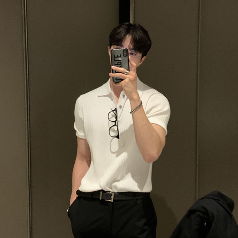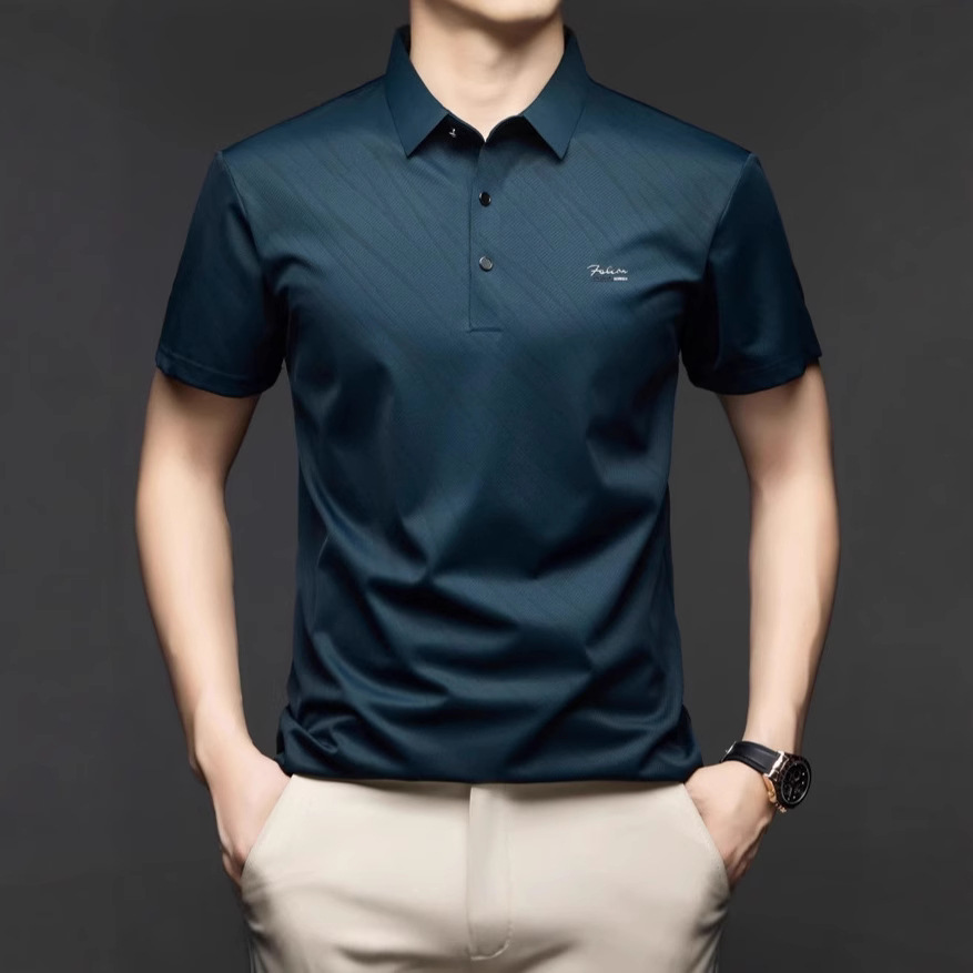 Kaus Polo Lengan Pendek Terpaku Mulus Kaus Wafel Melar Tanpa Besi Berkelas Bisnis Pria Atasan Trendi