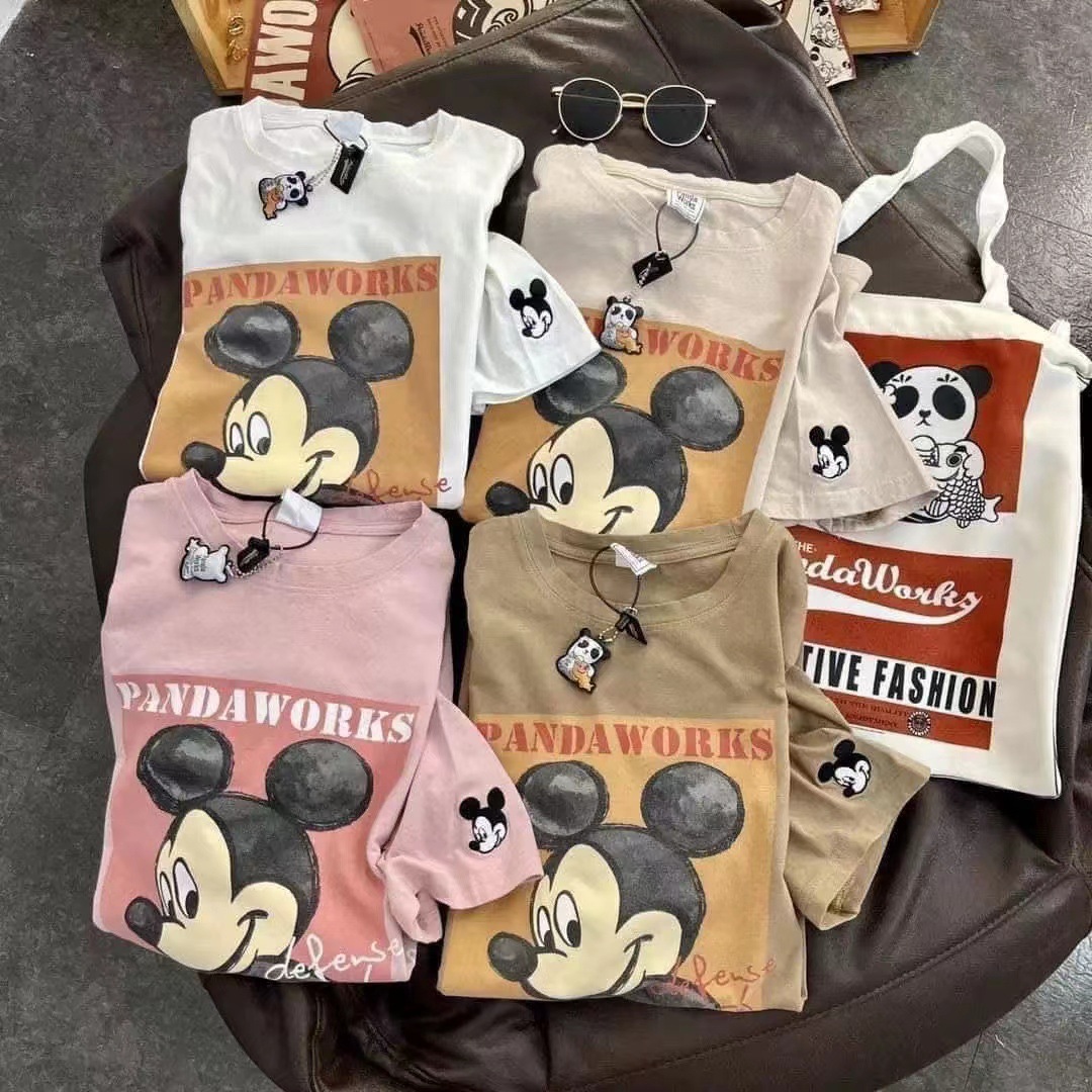 2022 Thailand Asia tenggara musim panas baru bordir kartun Mickey T-shirt wanita leher bulat longgar pabrik batch langsung