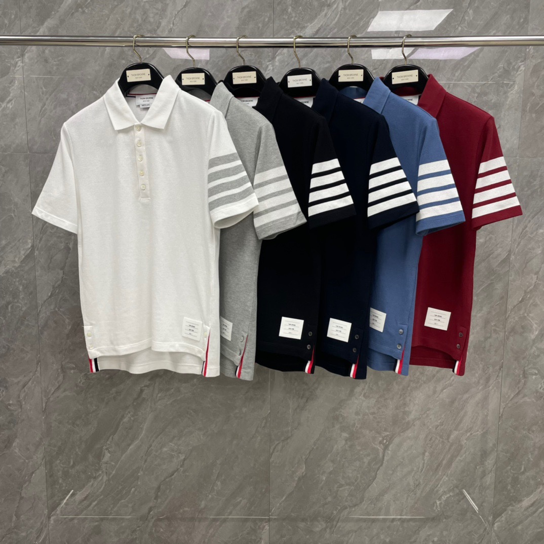Penjualan langsung dari pabrik kaus pendek tb musim panas kaus polo kaus mutiara celup benang empat bar lengan setengah bisnis kasual lapel T-shirt fashion