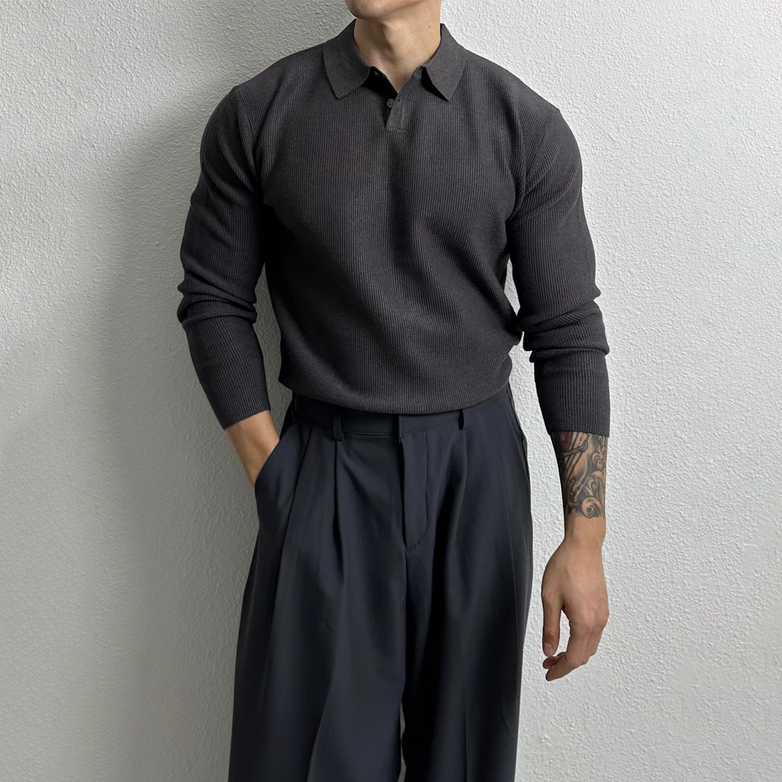高级感针织Polo衫男士新款韩版轻熟风亲肤百搭宽松人夫感穿搭毛衣