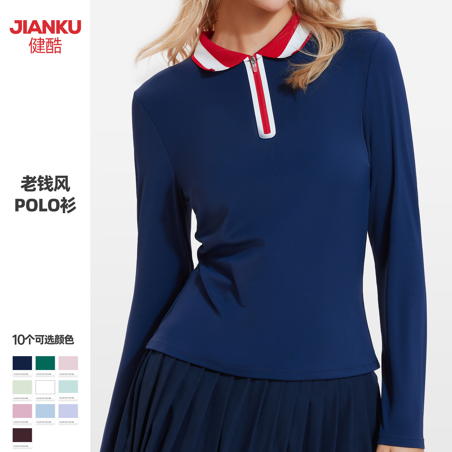 跨境新款翻领运动上衣女裸感速干瑜伽服长袖户外跑步高尔夫POLO衫