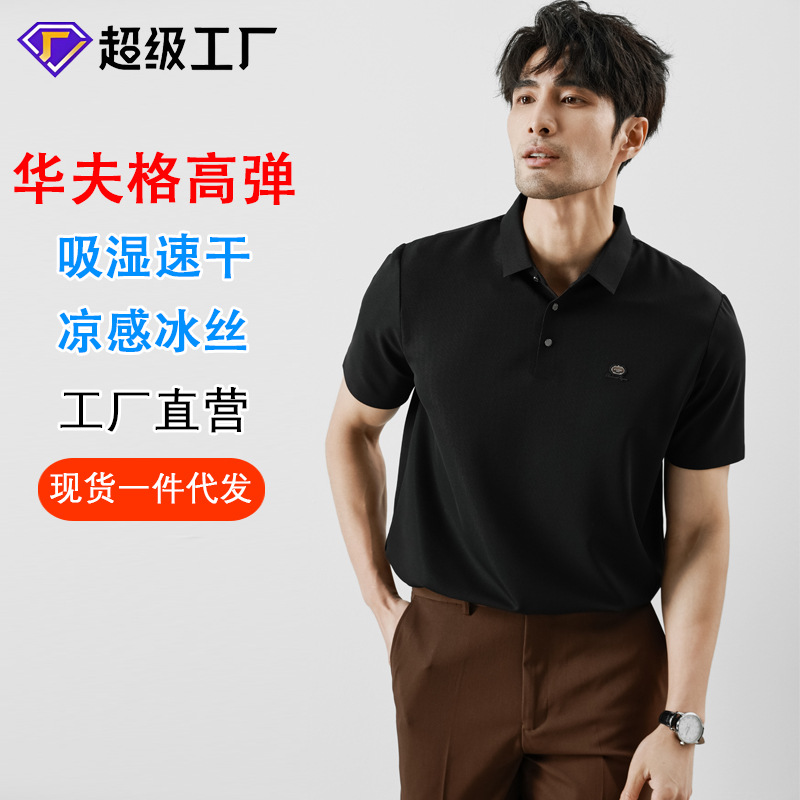 Kemeja Polo Pria Sutra Es Amonia Seamless Perdagangan Luar Negeri Khusus Lintas Batas Kemeja AC Model Tipis Lengan Pendek Kemeja Polo Pria Kerah Terbalik