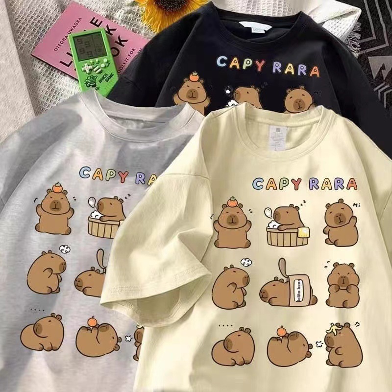 Kaos Lengan Pendek Kapita Motif Kartun Model Jepang Model Baru Musim Panas Kerah Tas Belakang Katun Murni Kaos Wanita Lucu Manis Longgar