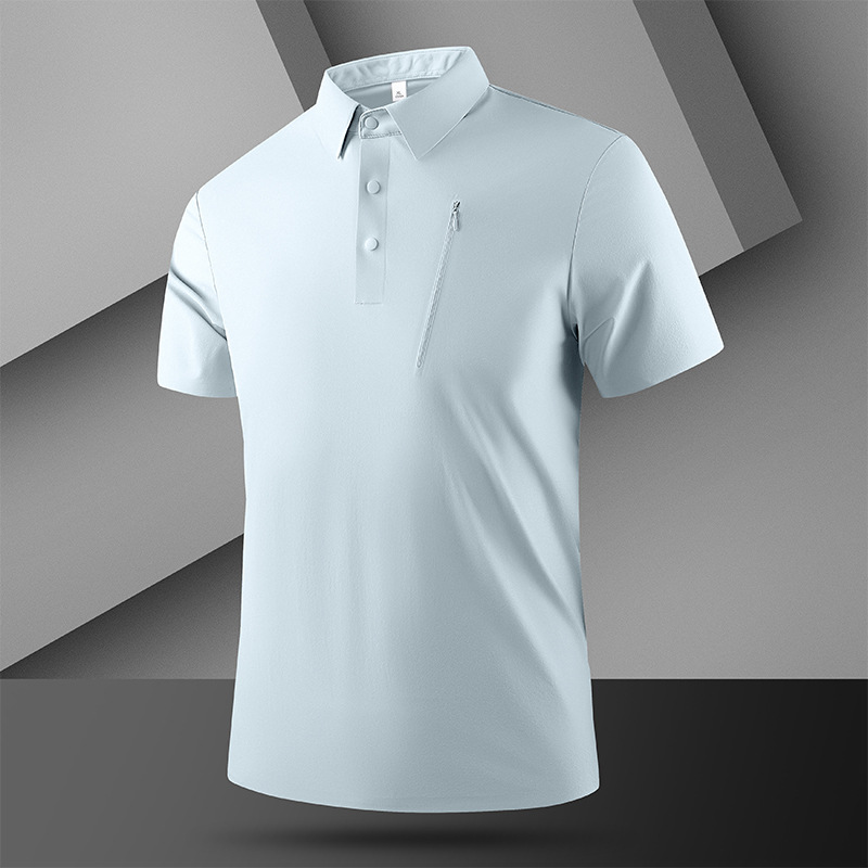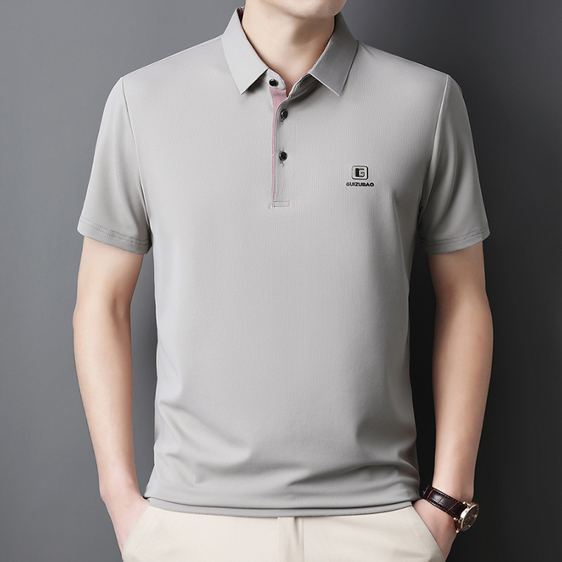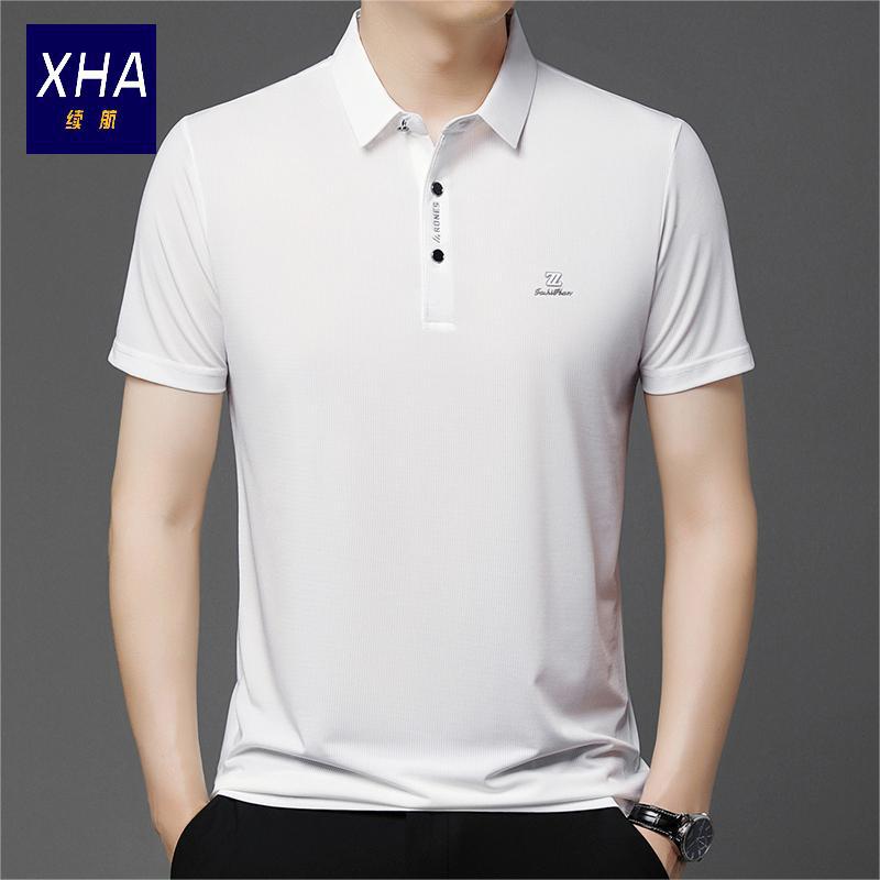 Kaus POLO Lengan Pendek Model Tipis Musim Panas Kaus Pakaian Pria Lengan Setengah Panjang Sutra Es Longgar Bersirkulasi Udara Bisnis Ringan Kerah Terbalik