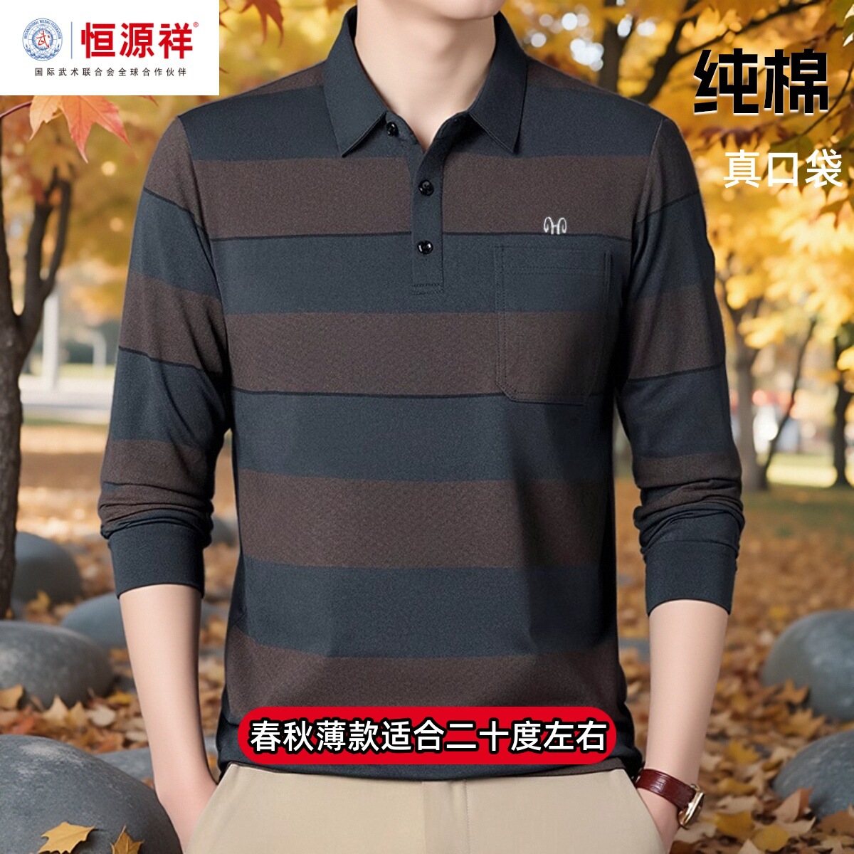 恒源祥彩羊中年男士长袖T恤爸爸秋装薄款打底衫春秋款上衣POLO衫