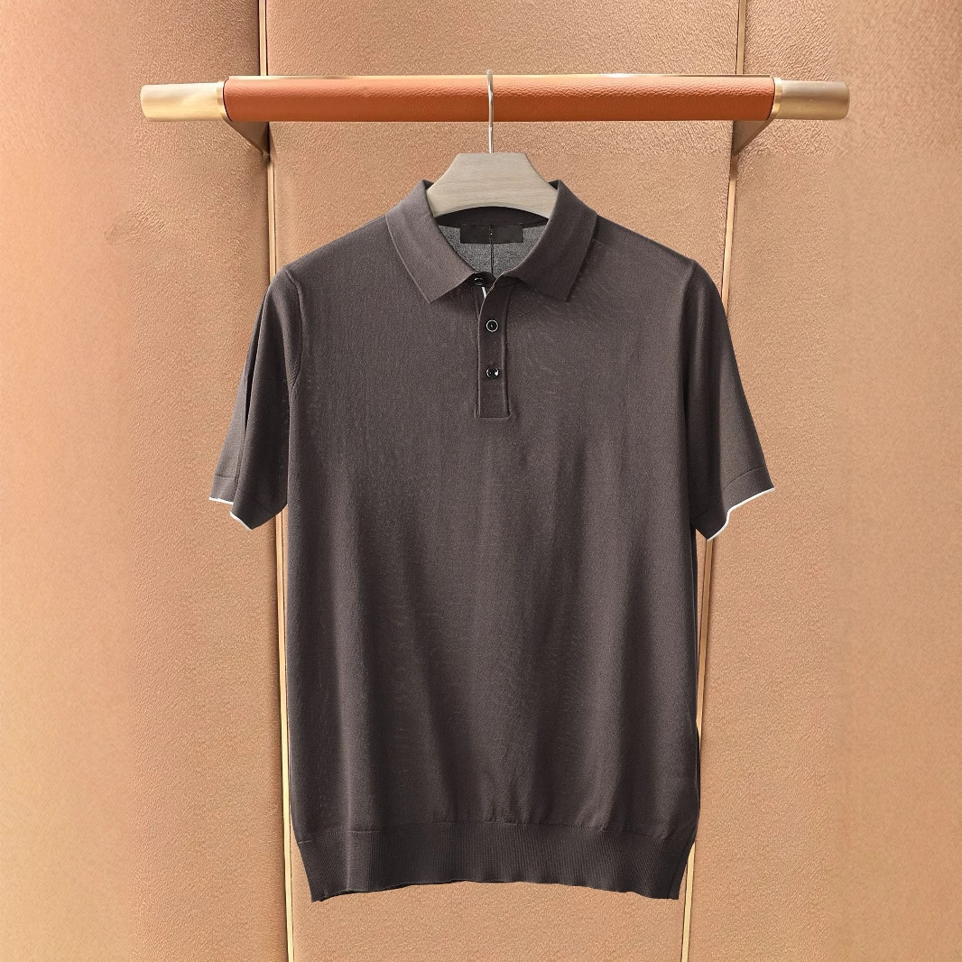 Kemeja polo rajut lengan pendek tipis bergaya kasual bisnis untuk pria dewasa, gaya old money, model baru musim panas, LP