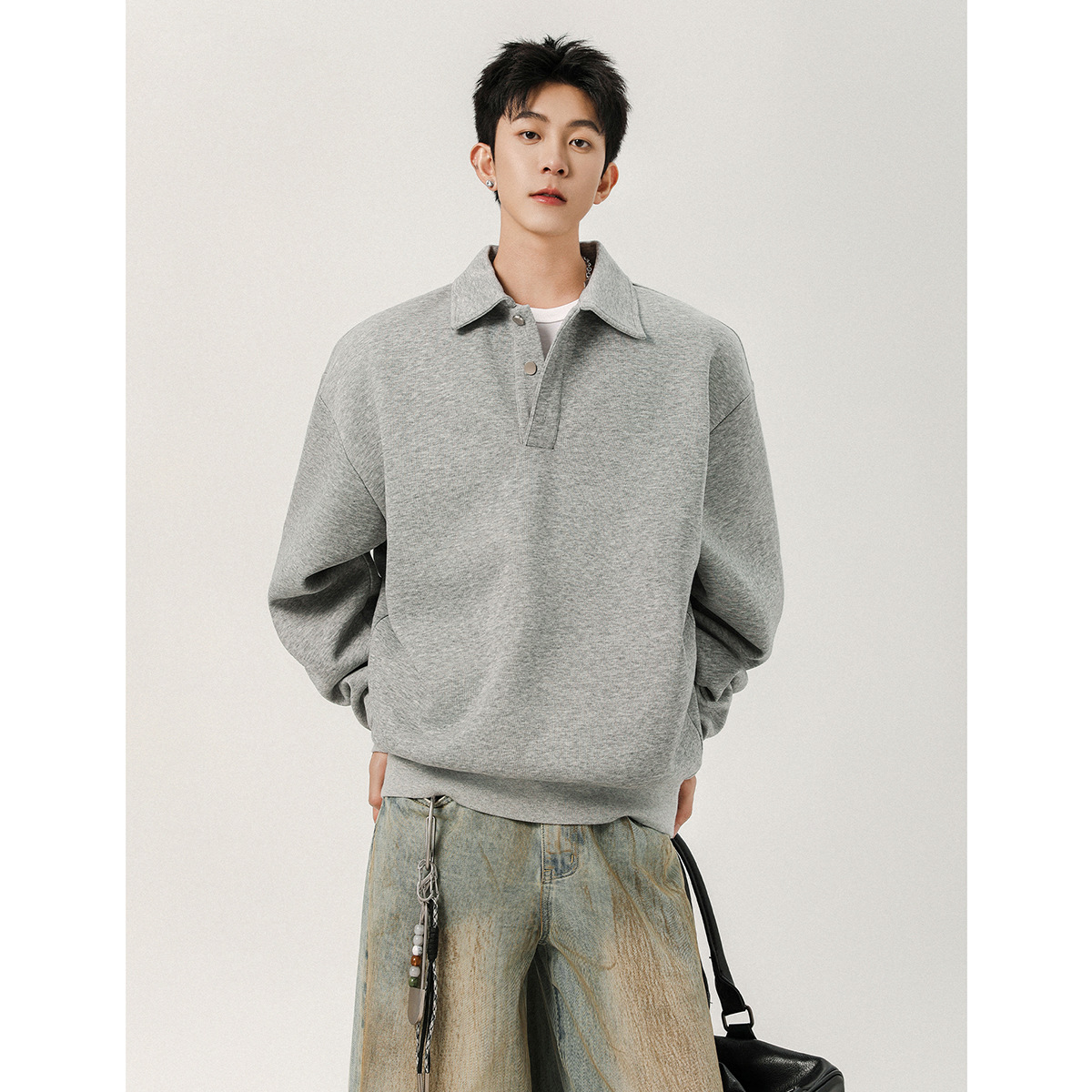 韩系cleanfit亨利领卫衣男美式boxy版型上衣潮牌高智miu系polo衫