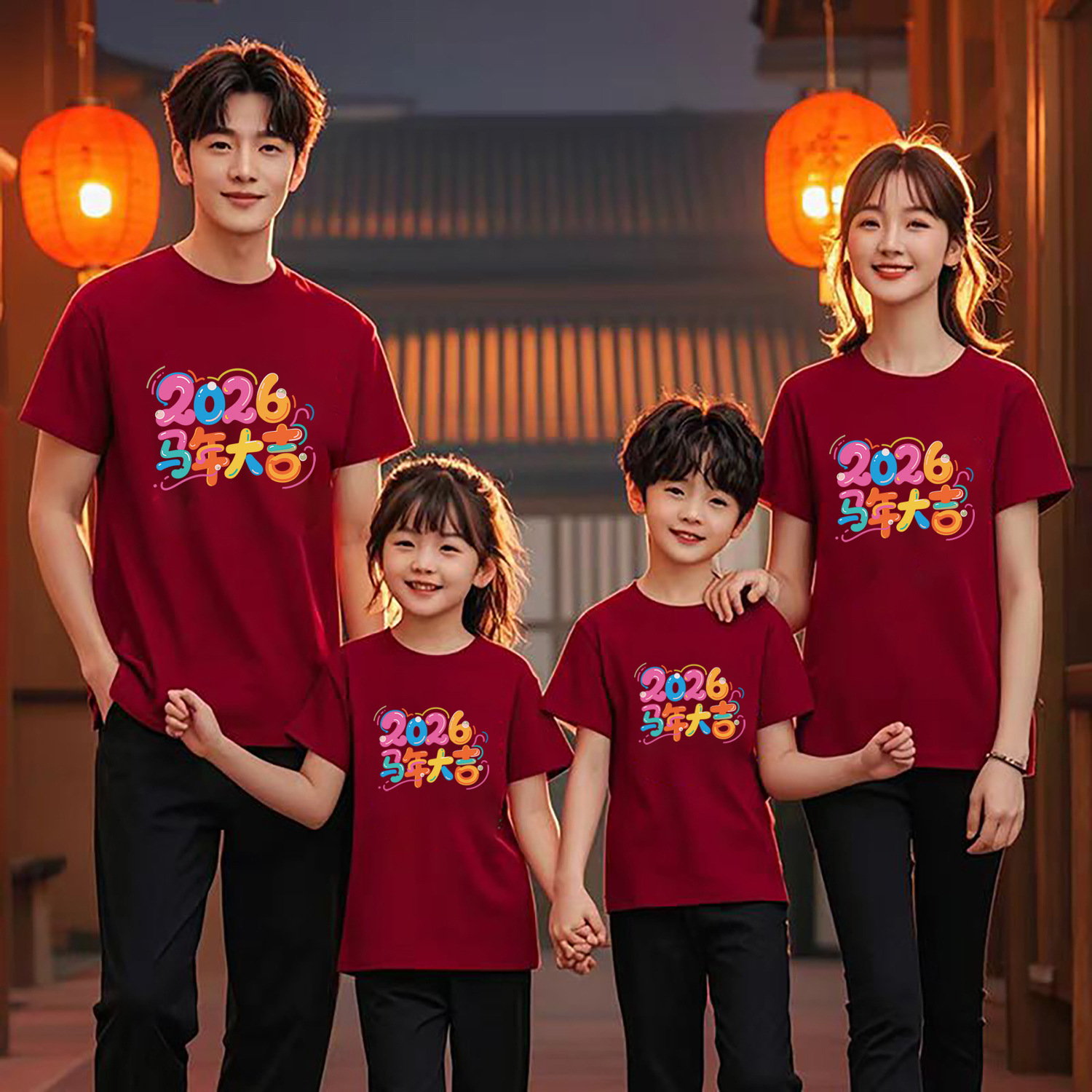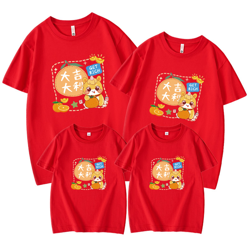 2026马年生肖短袖亲子装一家三四口本命年元旦活动红色全家福衣服