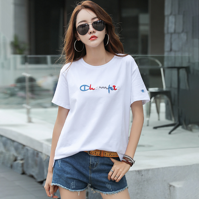 Kaus wanita lengan pendek, Kaus wanita lengan pendek, musim panas baru 2021, longgar, leher bulat, bordir ukuran plus, gaya Korea pelangsing, setengah lengan