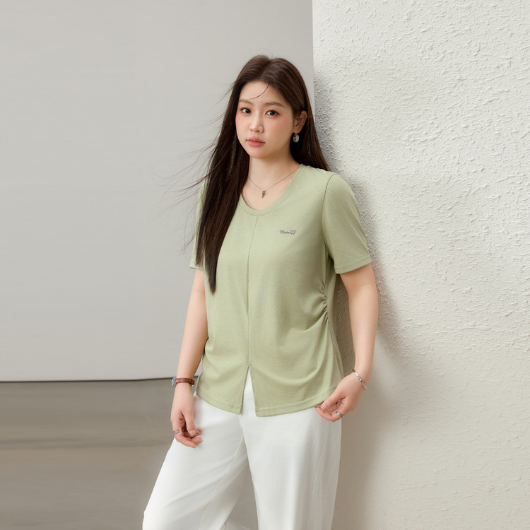 Kaus wanita ukuran besar Slim show, kaus ukuran plus wanita, simpel Semua cocok kasual, bahu mengurangi usia, leher V, pelangsing Semua cocok, musim semi, baru, 2024
