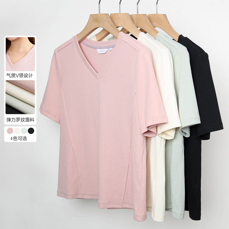 Kaus Wanita leher V baru gaya Korea, musim panas 2023 pakaian dalam jahitan diskon besar slim fit ramping lengan pendek ukuran besar 002P