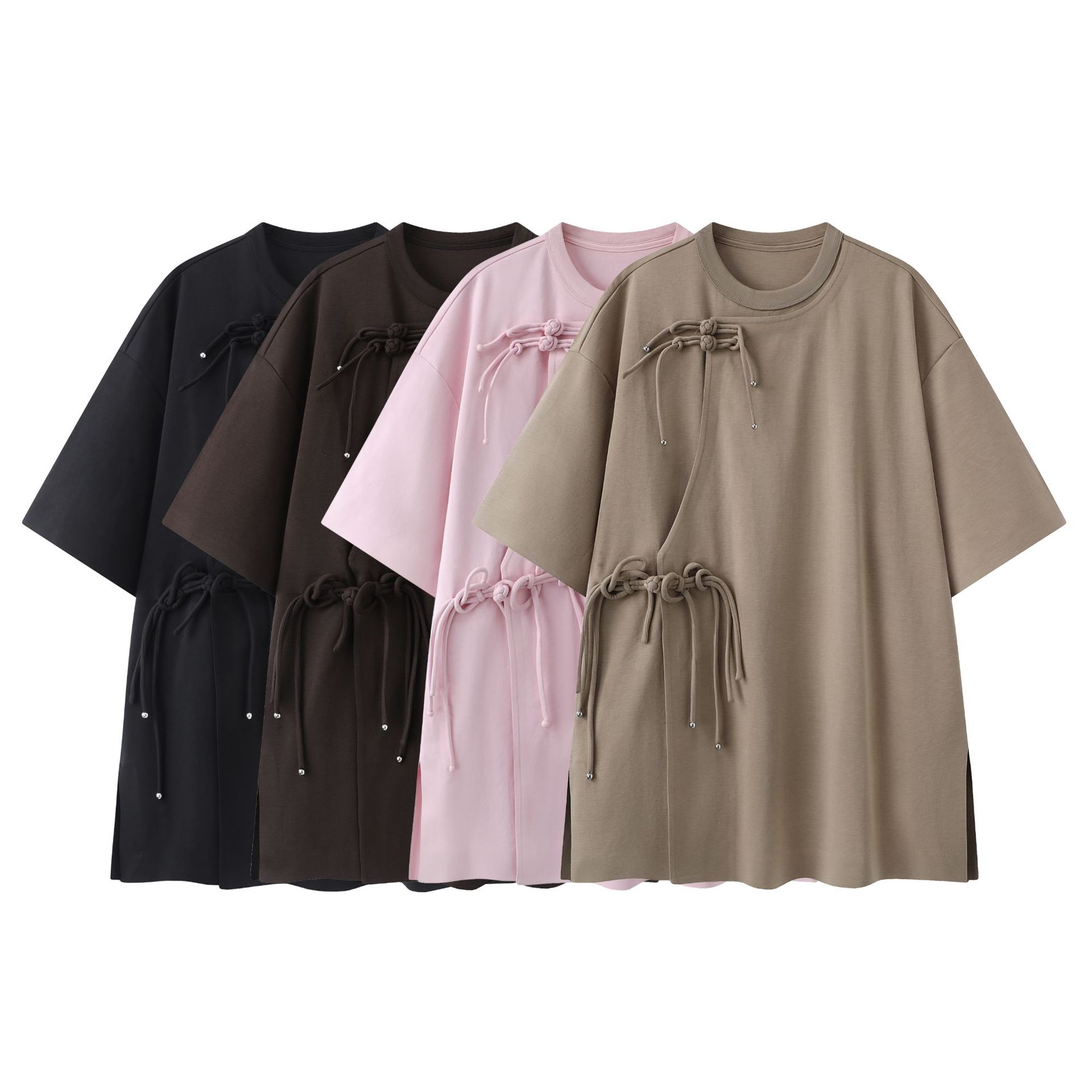 Baju Atasan T-Shirt Wanita Gaya Paru Lengan Pendek Ukuran Besar Longgar Gaya Desain Kancing Model Baru Gaya Tiongkok Musim Panas 2025