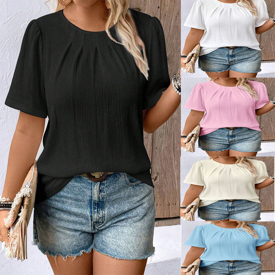 Kaus Lengan Pendek Ukuran Besar Longgar Kerah Bulat Model Baru Penjualan Luar Negeri Amazon Eropa dan Amerika Musim Panas 2025 Atasan