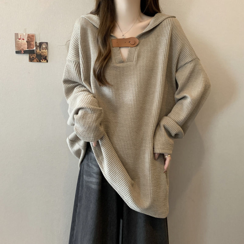 Pakaian Wanita Ukuran Besar Pakaian Wanita Sedikit Gemuk Gaya Desain Retro Gaya Longgar Versi Besar Sweatshirt Wanita Gaya Santai Gaya Santai Lengan Panjang Atasan Wanita
