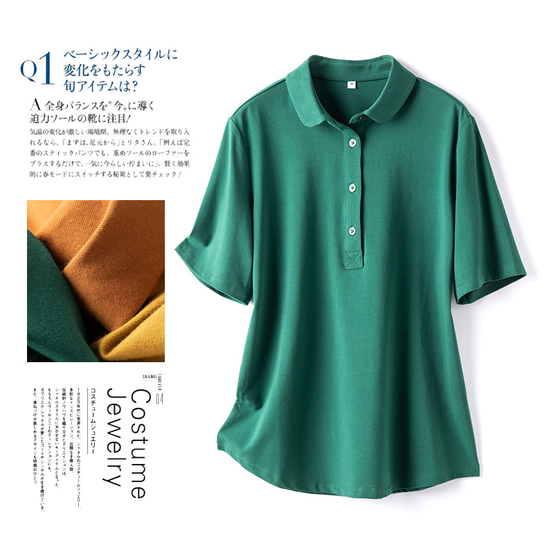 Perdagangan luar negeri ekspor harian potongan tunggal katun elastis kerah ingot setengah saku pullover kasual mengurangi usia kaos lengan pendek atasan