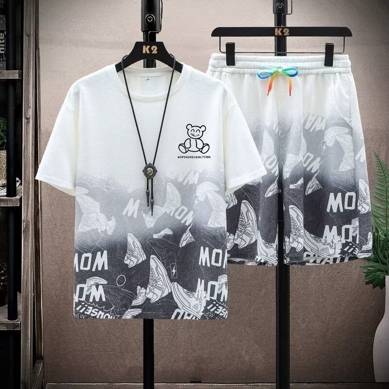 Setelan Kasual Lengan Pendek Pria Musim Panas 2024 Model Baru Celana Pendek Dua atau Tiga Set Pakaian Olahraga Ukuran Besar Pelajar Tren Grosir