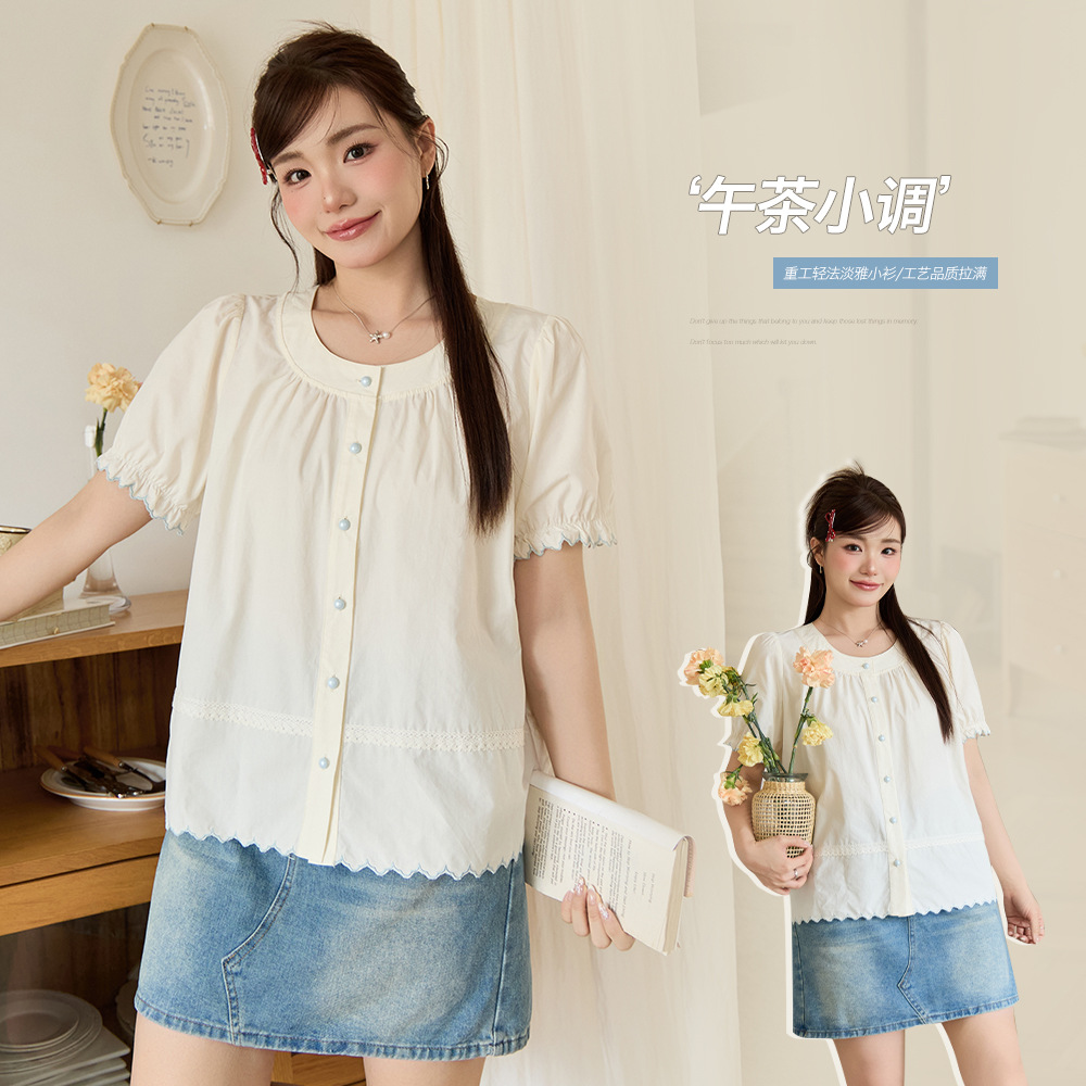 Model Baru Musim Panas 2022 Boneka Bordir Prancis Atasan Lengan Pendek Gelembung Berongga Warna Putih Kemeja Niche Gaya Desain Wanita