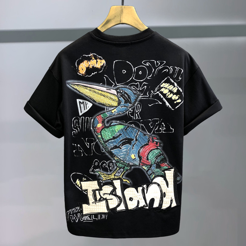 潮牌新款美式高街时尚字母抽象风格印花T恤 夏季宽松百搭薄款短袖