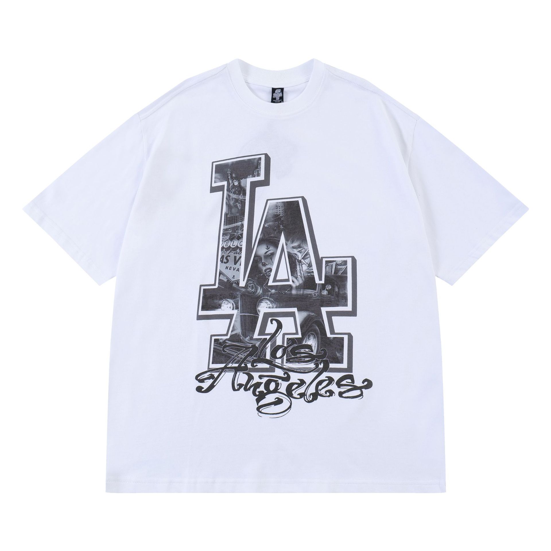 Kaus lengan pendek gaya Amerika plus kaus lengan pendek gaya chicano print besar hiphop pantai barat ukuran besar