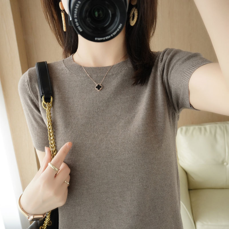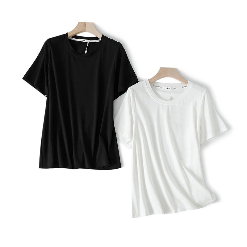 Kaos wanita warna solid ukuran plus 130-320 jin, gaya baru musim panas 2025, potongan longgar untuk saudara perempuan sedikit gemuk, menutupi kekurangan, serbaguna.